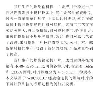 螺旋輸送機的螺旋葉片有實體螺旋面、帶式螺旋面和葉片螺旋面三種形式,其中,葉片式螺旋面應用相對較少,主要用于輸送粘度較大和可壓縮性物料,這種螺懸面型,在完成輸送作業(yè)過程中,同時具有并完成對物料的攪拌、混合等功能。